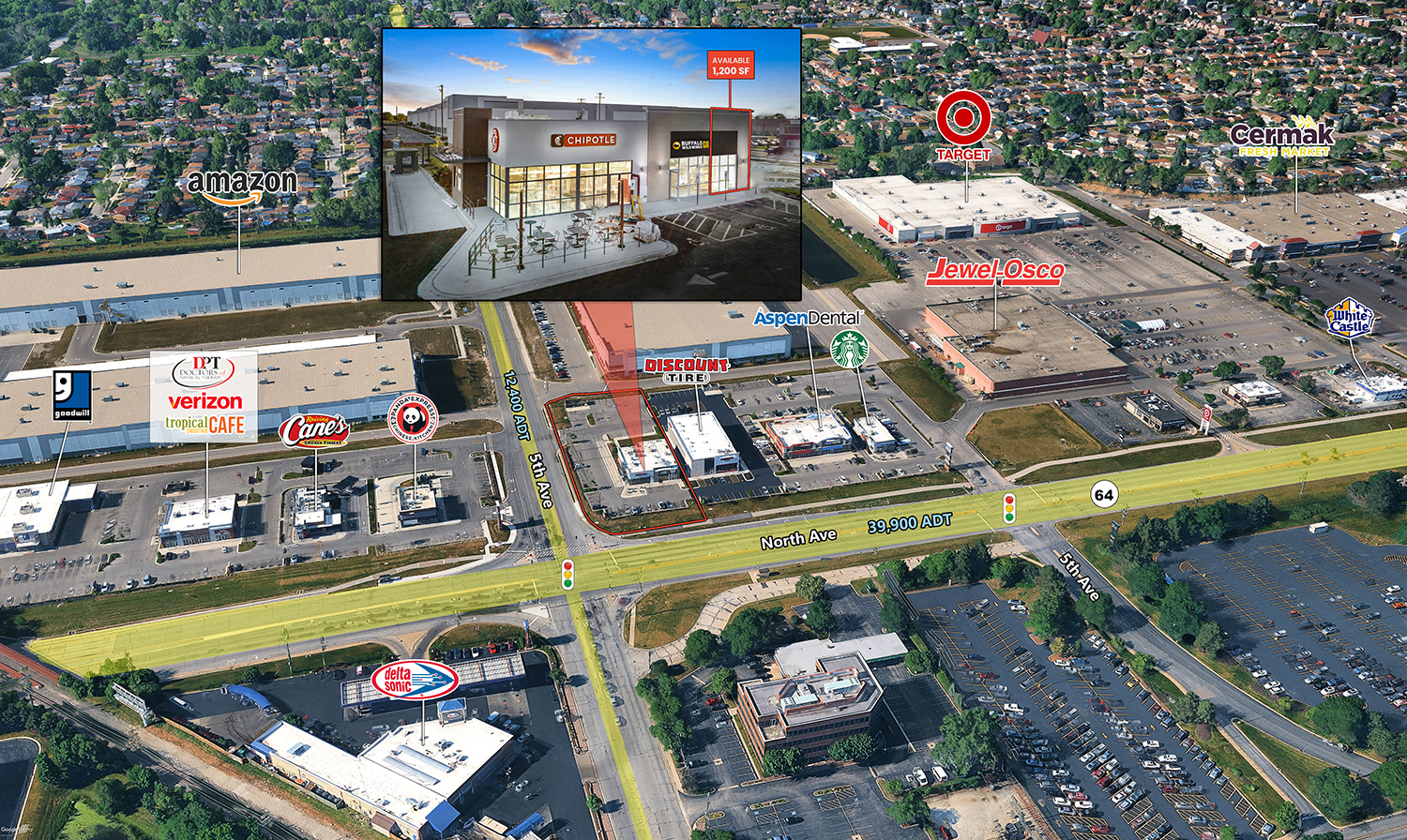 Prime endcap on heavily traveled W. North Avenue in Melrose Park