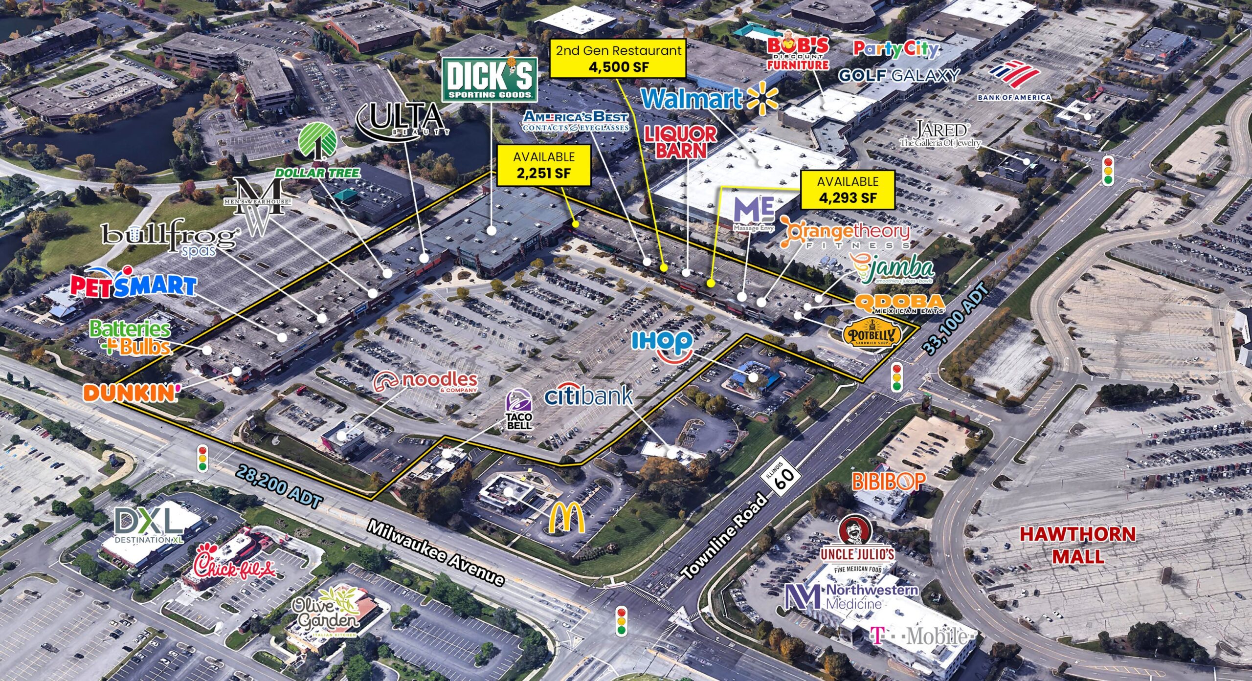 Hawthorn Hills Square is strategically located at the SWC of Route 21 (28,800 ADT) and Route 60 (40,800 ADT) and Route 60 (40,800 ADT). This is one of the few properties in Vernon Hills which is directly accessible to both Route 21 and Route 60.