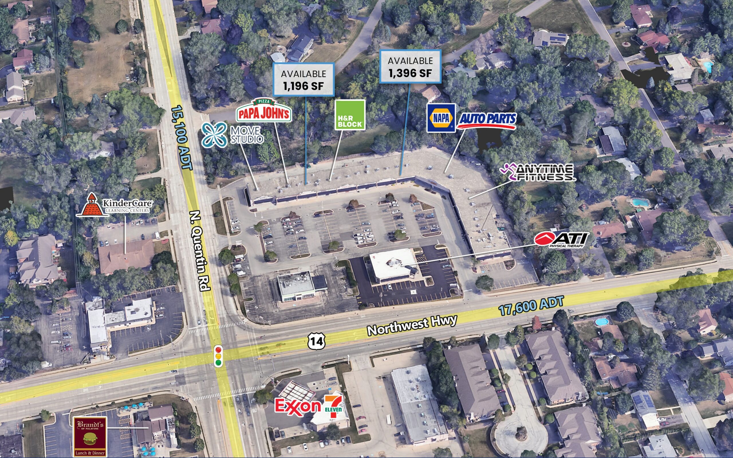 Located on the signalized intersection of Northwest Hwy & Quentin Road.